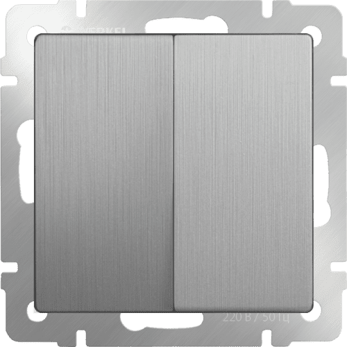 Выключатель двухклавишный проходной cеребряный рифленый Werkel WL09-SW-2G-2W кнопочного типа