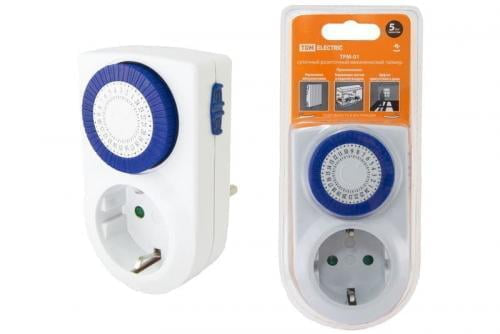 Предназначен для автоматического включения/отключения различных электроустройств в определенное время суток (ТРМ-01) и в течение недели (ТРЭ-01).ТРМ-01 программируется на сутки вращением по ч/стрелке рукоятки, поделенной на 48 секторов (сектор - 30мин)