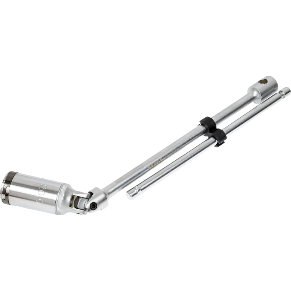 Свечной ключ с крестовым карданом FORCE 3/8 20,6мм 807330020.6U предназначен для обслуживания свечей зажигания в автомобилях. Инструмент обладает Т-образной рукояткой и посадочным размером 3/8". Кардан делает рабочую часть подвижной. Корпус изготовлен из прочной стали.