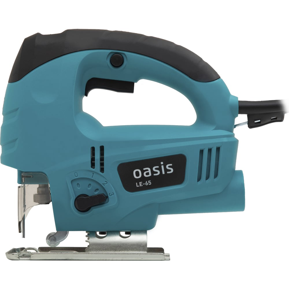 Электрический лобзик Oasis LE-65 предназначен для сквозного пиления, в том числе для прямого, поперечного, наклонного и продольного, заготовок из древесины, пластика, керамики и листового металла. Срок службы - 5 лет.Пользователи оценят:Износостойкий двигатель выдерживает высокие нагрузки и обладает мощностью 650 Вт.Лазерный указатель для более точных пропиловМеталлическая подошва обеспечивает надёжность в работе.Кнопка фиксации пуска удобна при выполнении повторяемых операций.Удобная прорезиненная рукоятка обеспечивает комфорт во время продолжительного использования.Регулировка угла наклона подошвы удобна для выполнения точных и разнообразных резов.4-х ступенчатый маятниковый ход позволяет регулировать скорость и качество пропила.Прозрачный защитный кожух для безопасного использования.Патрубок отвода пыли - позволяет подключить пылесос для обеспечения чистоты во время работы.Насадка для подсоединения пылесоса в комплекте.Система сдува стружки позволяет обеспечить превосходный обзор линии реза.Электронная регулировка скорости хода пилки служит для достижения наилучших результатов во время работы.