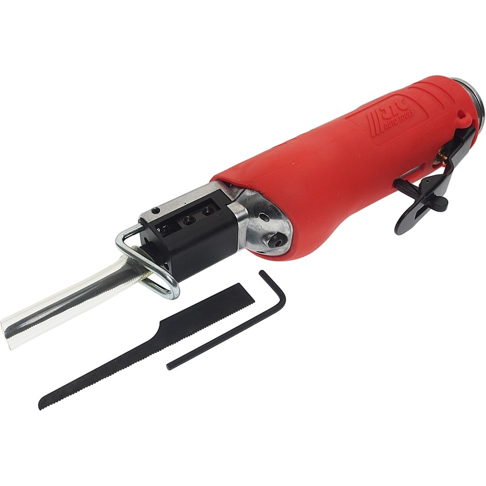 Мини-пневмопила JTC JTC-7745 выполняет 2 функции: резка и обработка. Оснащена зажимным патроном 5 мм. Резка листового металла (толщина 3 мм) и металла круглого сечения (диаметром 10 мм). Дополнительные характеристики Число оборотов: 10 000 об/мин. Длина хода: 6 мм Шум: 85 дБ