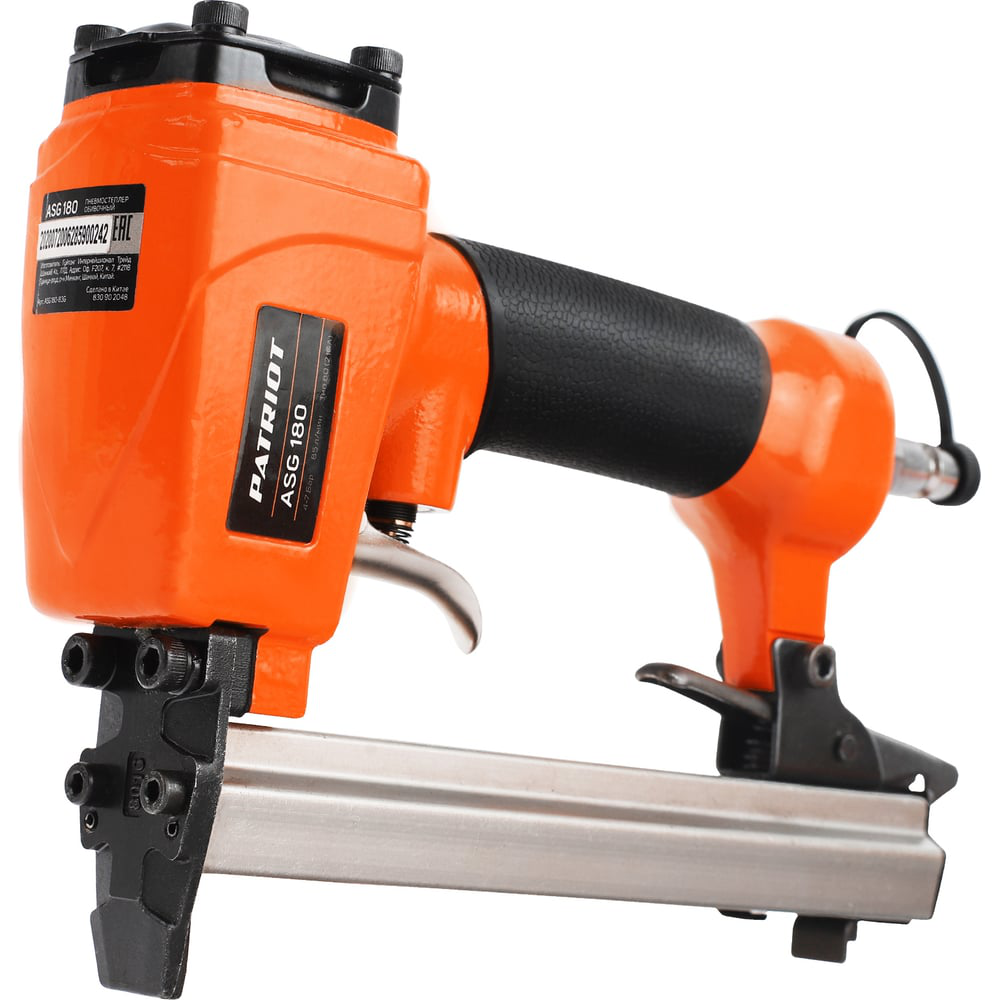 Обивочный пневмостеплер PATRIOT ASG 180 830902048 идеально подходит для крепления гипсокартона, фанеры и ДСП, обивочного материала. Используется со скобами с "широкой" спинкой типа 80 (21GA). Инструмент работает на сжатом воздухе, что значительно увеличивает его рабочий ресурс. Рукоятка имеет прорезиненную накладку для более надежного хвата.