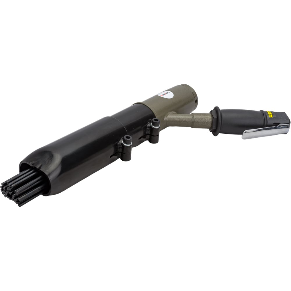 Пневмомолоток BYEMAX игольчатый тяжелый, пучок игл d-4мм BG-2111NS с пистолетной рукояткой 45 градусов обеспечивает удобный хват. Инструмент предназначен для обработки больших площадей: обдирки и зачистки твердых поверхностей (металла, камня) от ржавчины, старой краски, окалины, сварных брызг и других сильных загрязнений. Также может применяться в узкоспециализированных целях, например для придания шероховатости поверхности металла. В качестве рабочего инструмента используется пучок игл разного диаметра, обеспечивающего особую эффективность при обработке в углах или неровных поверхностях.