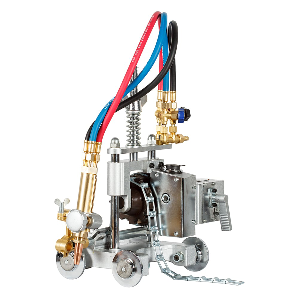 Машина термической резки ПТК CG2-11D 00000031809 может разрезать трубы с толщиной стенки до 50 мм. Машина способна производить рез и одновременное снятие фаски. Если изначально правильно подобраны мундштуки, то гарантируется чистота реза поверхности, и нет необходимости вторичной механической обработки. Есть электропривод для перемещения каретки. Это позволяет эффективнее работать на большой площади. Оборудование подходит для металлообрабатывающей промышленности. Перемещение каретки 50х100 мм