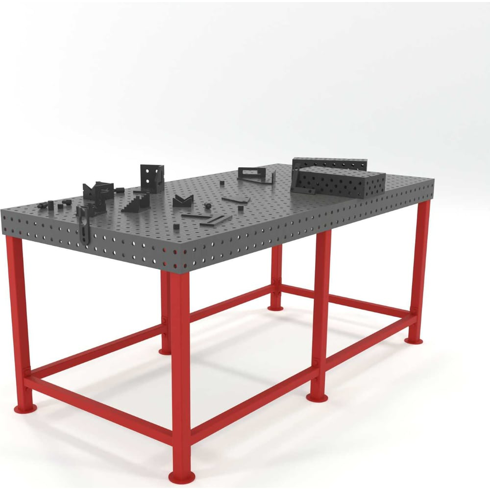 Особенности: Поставляется в собранном виде с комплектом опор, высота опоры: 850-910 мм. Столы могут использоваться для ручной и роботизированной сварки. Используется сталь 09Г2С – стол получается более прочный, жесткий, долговечный, устойчивый к коррозии и нагрузкам. Механические свойства стали 09Г2С на 30% лучше, чем стали СТ3. Шаг координатной сетки: 50 мм дает оптимальную точность, возможность точно фиксировать детали на столе и возможность варить широкий спектр изделий от мелких до крупных деталей. Плоскостность 0,5-1 мм на погонный метр дает оптимальную точность и стабильную повторяемость изделий, минимальный процент брака. 4-14 ребер жесткости (в зависимости от размера стола) дают улучшенную жесткость стола, стол не ведет, снижение деформации поверхности, стол выдерживает большие механические и термические нагрузки. Точность регулировок опор стола – 1 мм, высота фиксируется регулировочным винтом. Столешницы обработаны антипригарной жидкостью. Изделия не прилипают при сварке, увеличивается скорость работы сварщика, стол более защищен от прилипания окалины и расплавленного металла. Максимально разрешенная статичная нагрузка до 2000 кг. Добавочные плиты и соединительные блоки дают возможность стыковать несколько сварочных столов в систему для сборки крупногабаритных и массивных изделий. Лазерная обработка отверстий для оснастки + дополнительная механическая обработка отверстий.