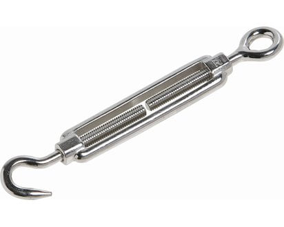 Изготовлен из углеродистой стали. Покрытие - цинк. Применяется для регулировки натяжения тросов и цепей.