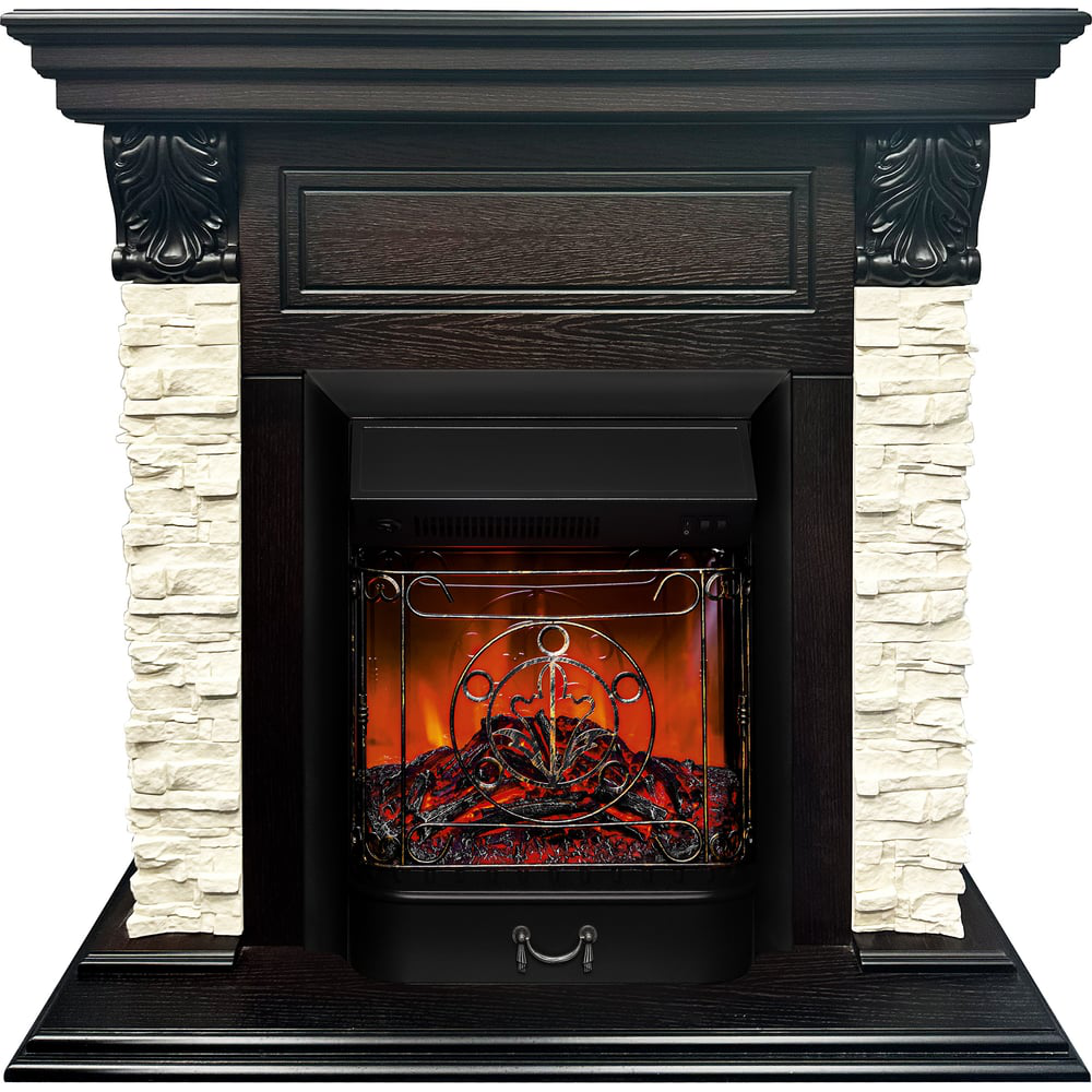 Каминокомплект BILBAO STD/EUG AO-215 + MAJESTIC LUX BL с пультом 9913705 - сочетание рельефного скалистого камня и натуральных древесных тонов каминокомплекта Bilbao STD AO наполнит пространство природной теплотой и уютом загородного дома. Портал изготовлен из МДФ с прочным ПВХ-покрытием и искусственного камня – материалов, устойчивых к перепадам температуры, влажности и механическим воздействиям.Отличительная зеркальная задняя стенка позволяющая улучшить эффект имитации пламени.В очаге Majestic - Ажурная кованая решетка.Очаг с функцией обогрева. 2 уровня регулировка мощности обогрева. Мощность обогрева: 0,75/1,5 кВтМуляж: дроваТип ламп: светодиодыВнутренняя стенка: зеркальнаяКорпус: черныйОсобенности: без внешнего стекла, декоративная решеткаПульт ДУТаймер отключенияЗащита от перегреваРегулировка яркости пламениЗвуковой эффект