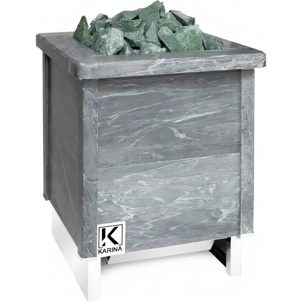 Электрическая печь KARINA Quadro 18 Талькохлорит – это электрокаменка, облицованная натуральным камнем со всех сторон, и обладающая мощностью оптимальной для коммерческих саун объемом до 30 м3. Талькохлорит эстетично смотрится в любом интерьере и обладает множеством лечебных свойств. При нагреве он выделяет с паром витамин D полезный для костной системы человека. Талькохлорит способствует улучшению обмена веществ и общему укреплению иммунитета. Кроме того, минерал улучшает теплообмен в парильном помещении. Емкость отсека для камней составляет 60 кг. Для работы электропечи понадобится сеть с напряжением 380 В. Нагревательным элементом в печке является ТЭН из высококачественной нержавеющей стали, который имеет повышенную электробезопасность и обладает большой тепловой инерцией. Диаметр нагревательного элемента составляет 13 мм. Подобные нагреватели нормально переносят попадание влаги. Это позволяет устанавливать электрическую каменку как в бани с сухим паром, так и в парные с паром повышенной влажности. На камни, находящиеся в отсеке, можно лить воду, благодаря особой конструкции печи и нагревательному элементу. У представленной модели предусмотрен напольный монтаж. Печь не укомплектована выносным пультом управления, его необходимо приобрести отдельно.
