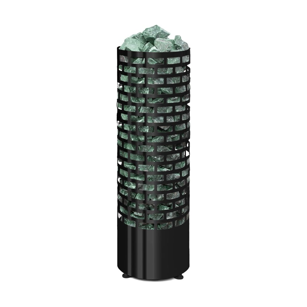 Электрокаменка Karina Nova 15E Black предназначена для использования в парных объемом до 24м3. Печь выполнена в напольном варианте, цилиндрической формы. Напряжение питания – 380В. Данная модель укомплектована 6 ТЭНами, расположенными в виде треугольника. Внизу каменки находится бак для воды емкостью 4.2 л, который является парогенератором. Выше парогенератора расположена емкость под мелкие камни или нержавеющие шары объемом 5 л, вмещающая 10 кг мелкого камня, называемая закрытой каменкой с воронкой для подачи воды и получения мелкодисперсного пара. Nova 15E многофункциональна, и при правильной эксплуатации она подойдет для любителей как финской сауны, так и русской бани. Если в парогенератор не заливать воду, то каменка разогреет парную до высокой температуры (100 -120°C) с относительной влажностью воздуха 10-12% - режим сухой бани (финская сауна). Если залить воду в парогенератор, то при разогреве парной вода будет испаряться и увлажнять воздух до режима русской бани (60-70°C и 40-50% влажности). Управление электропечью осуществляется с помощью выносного пульта, который не входит в комплектацию и приобретается дополнительно. Благодаря выносному управлению каменку можно установить в различных местах парильного помещения. Все корпусные элементы печи выполнены из нержавеющей стали. Вес загружаемых камней составляет 120кг. Нагревательный элемент - ТЭН диаметром 10мм. В итоге с помощью парогенератора, закрытой каменки и большой закладки камня, достигается легко режим русской бани.