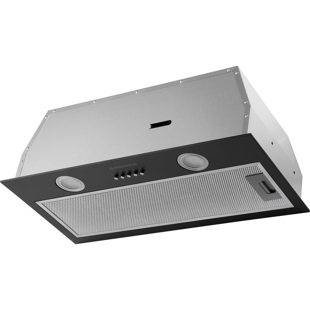 Кухонная вытяжка MAUNFELD черный THAMES 601M BLACK - оптимальное решение для небольшой кухни до 15 кв.м. Модель встраивается в навесной шкаф над поверхностью плиты. Работает в двух режимах - отвода, при подключении к системе вентиляции, и рециркуляции, при использовании сменного угольного фильтра. На фронтальной панели черного цвета находится съемный многослойный жироулавливающий фильтр, выполненный из алюминия.