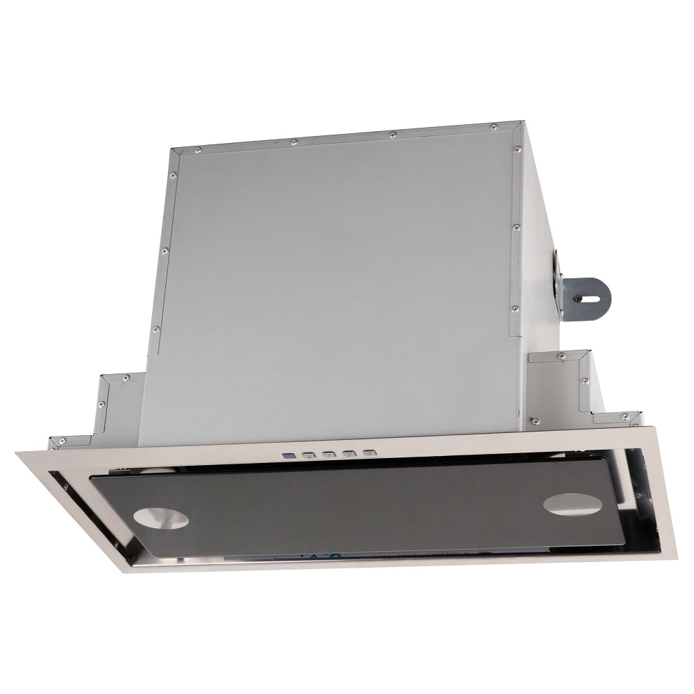 Вытяжка выполнена в современном дизайне с использованием закаленного стекла, что придаёт ей стильный и элегантный вид. Оснащена мощным двигателем и дистанционным управлением (управление жестами). Она может работать в режиме отвода воздуха в вентиляцию или в режиме рециркуляции (с установкой угольных фильтров, не входят в комплектацию). Вытяжка оснащен встроенной подсветкой, что улучшает видимость на рабочей поверхности и добавляет дополнительное освещение в кухонное пространство.