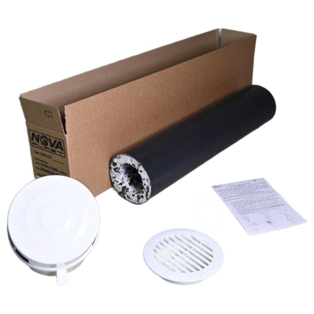 Стеновой шумозащитный клапан NovaPROF, комплектуется фильтром класса G-3, теплозвукоизолирующим стеновым каналом и внутренним корпусом, предназначен для осуществления нормативного воздухообмена в помещении, с контролем потока воздуха, в соответствии с СП 60.13330.2020 «Отопление, вентиляция и кондиционирование воздуха». Воздух, через наружную вентиляционную решетку, поступает в вентиляционный канал из ПВХ трубы. Внутренний диаметр трубы 125 мм. Для теплозвукоизоляции вентиляционного канала используется материал устойчивый к микроорганизмам, плесени и грибам, толщиной 20 мм. Далее воздух проходит через плавно-регулируемые заслонки во внутренний корпус клапана и через фильтр класса G-3, поступает в помещение. Тем самым, осуществляется приток «свежего» воздуха, а воздух «отработанный» выходит через вытяжную вентиляцию из помещения. Клапан рекомендуется устанавливать на высоте не ниже 1.9 м от пола, для того, чтобы холодный воздух перемешивался с теплым. Материал внутреннего корпуса: АБС. Материал воздушного канала: ПВХ. Материал наружней вентиляционной решетки: АСА (атмосферостойкий). Монтаж: через отверстие в стене диаметром 132 мм. Теплозвукоизоляция внутреннего корпуса вентиляционного канала: сшитый пенополиолефин/пенополиуретан вторичного вспенивания. Материал фильтра: ретикулированный пенополиуретан, класс фильтрации G3 (задерживает до 90% частиц, размером до 10 мкм). Расход воздуха при 10па: 60м3/час. Размер внутреннего корпуса (ШхВхГ): 175х175х62 мм.