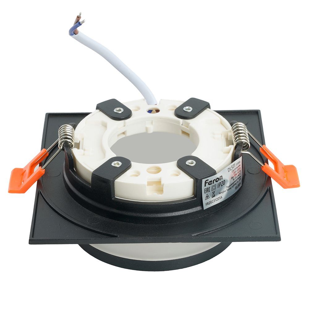 Расширенная гарантия на товар составляет 12 месяцев. поставщик рекомендует использовать лампы накаливания с цоколем не указан для освещения площади не указана м2. Светильник встраиваемый Feron DL501 потолочный GX53 черный квадрат 51088 в современном стиле используется в интерьере не указан с установкой не указано.