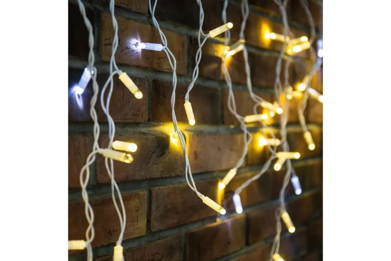Уличная IP65 Гирлянда Айсикл (бахрома) 4,8х0,6м, с эффектом мерцания, белый ПВХ, 230В, цвет: Тёплый белый, NEON-NIGHT - это эффектная гирлянда для уличного оформления. Ее длина составляет 4,8 метра, а ширина 0,6 метра, что позволяет создать впечатляющий декоративный эффект. Гирлянда выполнена из прочного и надежного белого ПВХ, обладает степенью защиты IP65, что обеспечивает защиту от пыли и влаги.Особенностью этой гирлянды является эффект мерцания, который придает ей особую магию и привлекательность. Она работает от напряжения 230В и освещает окружающее пространство ярким и теплым светом цвета Тёплый белый. Гирлянда отлично подходит для создания новогоднего или праздничного настроения на улице, во дворе, на террасе или в саду. Благодаря качественным материалам и яркому свечению, она станет отличным дополнением к любому уличному декору от NEON-NIGHT.