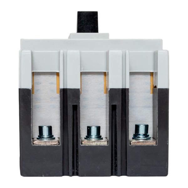 Выключатель ВА-99М выполнен в виде моноблока и состоит из основания и крышки с фальшпанелью, в которой имеется окно для рукоятки управления и толкатель кнопки «Тест» - проверки механизма отключения выключателя. Основание выполнено из термостойкой пластмассы, не поддерживающей горение и являющейся несущей конструкцией для присоединительных зажимов, неподвижных и подвижных контактов с системой дугогашения, механизма управления, блока защиты от сверхтоков. Крышка закрывает все подвижные элементы механизма управления и внутренние токоведущие части.