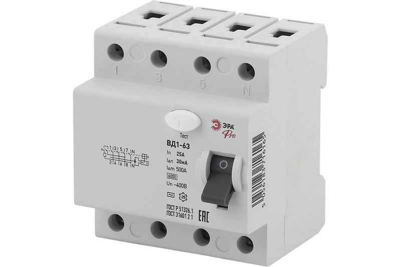 УЗО ЭРА ВД1-63 - это электромеханическое устройство, предназначенное для защиты электрических цепей от перегрузок и короткого замыкания. Данное УЗО имеет характеристику 3Р+N, что означает, что оно предназначено для трехфазных сетей с нейтралью. Ток номинального тока составляет 25А, а чувствительность тока утечки - 30мА типа АС. Код товара - Б0031880. УЗО ЭРА ВД1-63 обеспечивает надежную защиту электрических устройств и оборудования от повреждений, вызванных нештатными ситуациями в электрической сети.