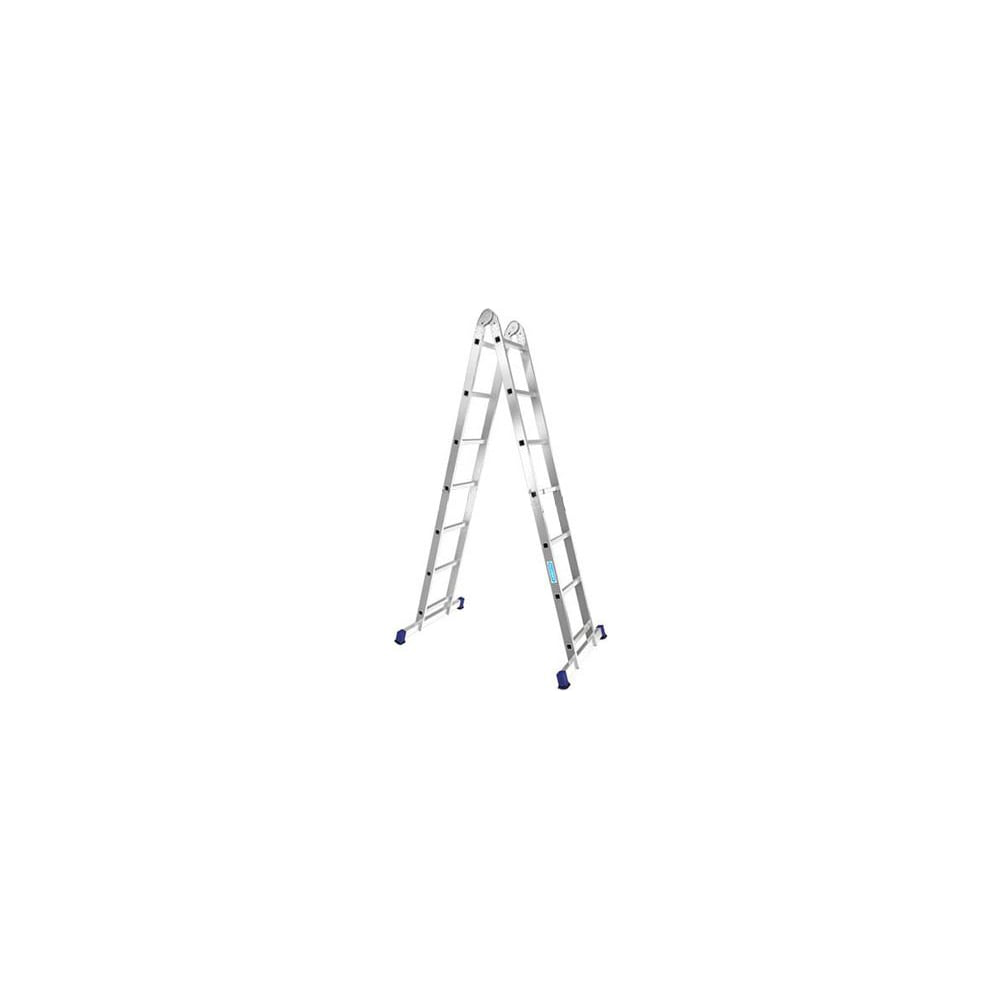 Лестница алюминиевая двухсекционная шарнирная профессиональная– представляет собой лестницу-трансформер, состоящую из двух секций, соединенных между собой стальными шарнирами.Шарнины имеют три угла фиксации, которые обеспечивают лестнице положения: -приставная, -стремянка.Тетивы, ступени и стабилизатор лестницы изготовлены из высокопрочного алюминиевого сплава (ГОСТ 22233-2018), обеспечивающего изделию прочность и легкость, что важно для транспортировки и установки. Ступени выполнены с рифлением,что способствует безопасному подъёму и спуску.Идеальный помощник на производстве, в офисе, в быту, на даче или гараже.Лестницу можно использовать вне помещения. Конструкция стойкая к воздействию неблагоприятных погодных условий благодаря коррозионностойким свойствам алюминия. Этот фактор является одним из главных преимуществ модели.Особенности лестницы: усиленные шарниры, два стабилизатора.Данная линейка лестниц подходит для строительства и ремонта на профессиональном уровне, а также для выполнения бытовых работ.!Доукомплектовать лестницу можно: шарнирами HВВ10-16, стабилизатором STB, комплектом заглушек для стабилизатора ZGS!Завод – изготовитель оставляет за собой право в одностороннем порядке вносить изменения в конструкцию, в целях улучшения технических характеристик.на линейные размеры отклонение может составлять +-5 мм, на вес изделия +-5%*кол-во ступеней на фото может не совпадать с описанием.