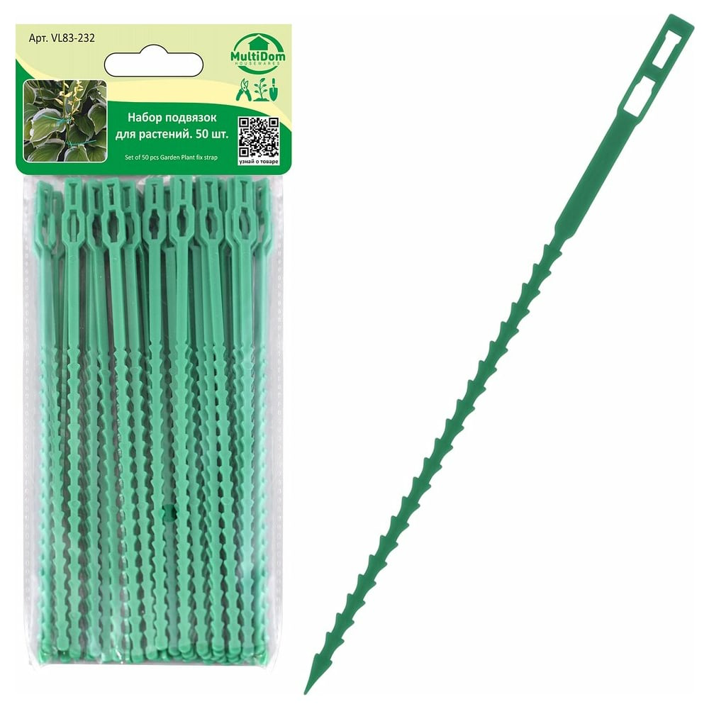 Набор подвязок для растений МУЛЬТИДОМ 50 шт., 22 см VL83-232 предназначены для подвязки и фиксации растений. Подвязки плотно фиксируют растения в нужном положении, легко регулируются, не вредят растениям и не препятствуют их росту. Простой и понятный механизм работает по принципу стяжки. Возможно многократное использование. Также подвязки можно использовать для фиксации и крепления проводов и небольших садовых шлангов.